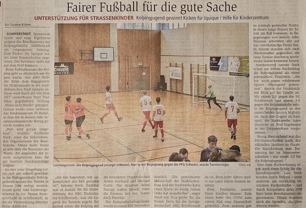 UNTERSTÜTZUNG FÜR STRASSENKINDER - Kolpingjugend gewinnt Kicken für Iquique / Hilfe für Kinderzentrum
