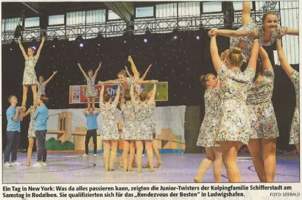 Ein Dauergast bei den Veranstaltungen des Pfälzer Turnerbundes ist auch die Kolpingfamilie Schifferstadt. Am Wochenende tanzten zuerst die Kinder und später dann die Eltern. Die Junior-Twister mit „Ein Tag in New York" sind am 26. November ebenso in Ludwigshafen dabei wie Twisters mit „Senioren-Tanzkaffee“ sowie das Twister Trio mit „Der Maler und sein Bild". Eine Aufführung übrigens mit Live-Gesang von Marius Hardt, die in einer stark besetzten Kategorie siegte. Hardt trat 2012 beim TV-Song Wettbewerb „Voice“ auf und kam unter die besten 100.