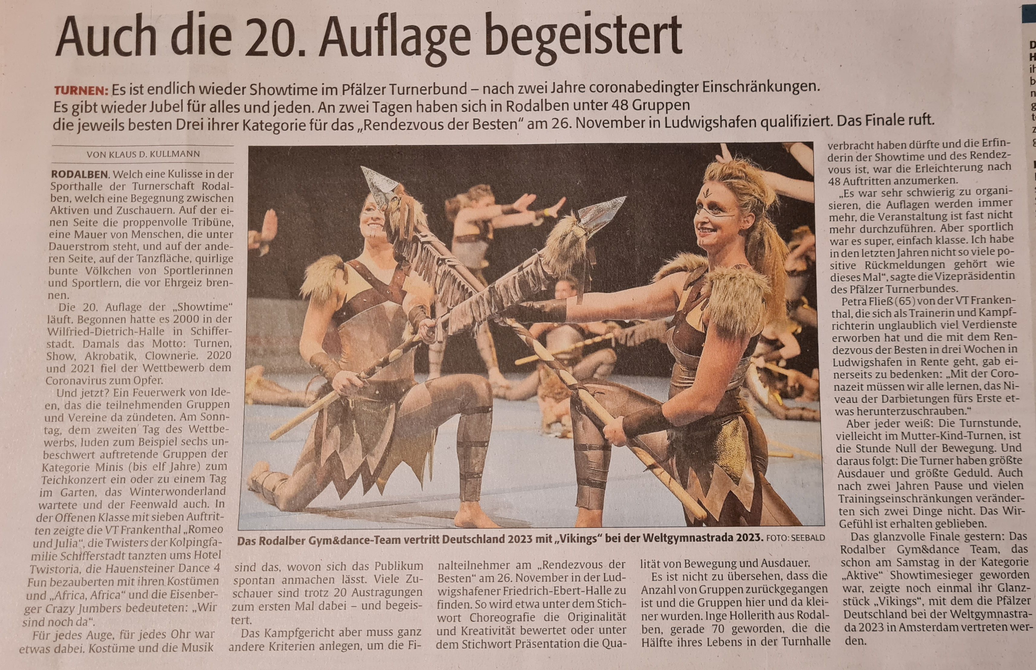 Turnen: Bei It's Showtime in Rodalben nehmen 25 Gruppen aus Ludwigshafen und dem Rhein-Pfalz-Kreis teil -