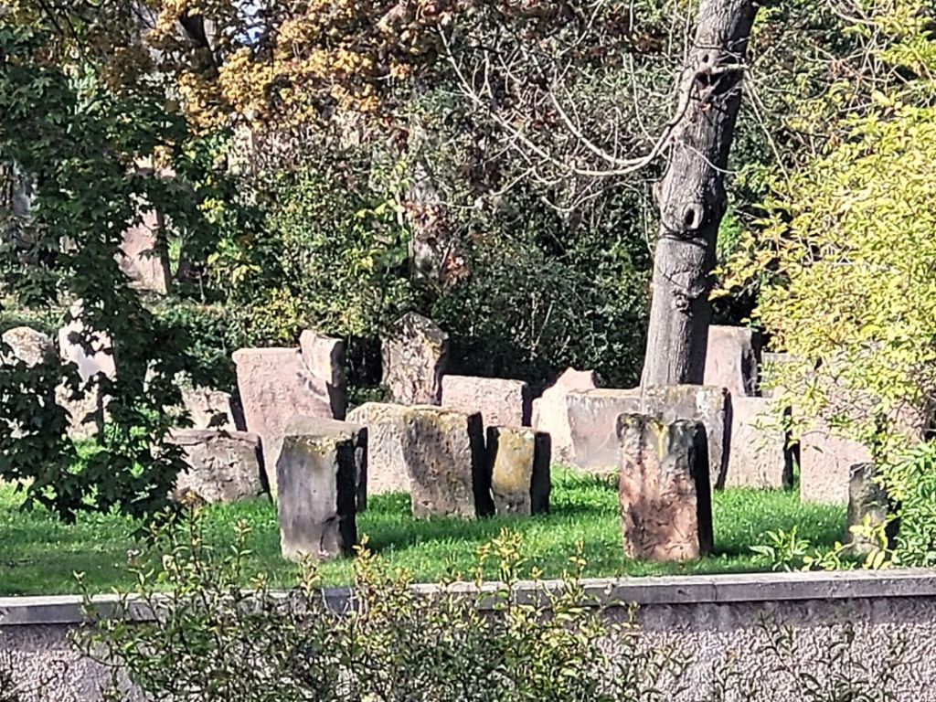 Start des Rundgangs war um 14:30 Uhr am Hauptportal des Wormser Doms. Als erstes ging es dann in die im 8. oder 9. Jahrhundert erbaute Magnuskirche, welche noch heute als Pfarrkirche dient. Weiter dann vorbei an den neu restaurierten Elefantenhöfen und dem benachbarten Andreasstift, das seit 1930 als Museum der Stadt Worms dient, durch das Andreastor, zu der alten Stadtmauer. Diese wurde etwa ab dem 9. Jahrhundert errichtet und ist noch eindrucksvoll erhalten. An der Stadtmauer entlang ging es wieder Richtung Domvorplatz in den Garten des Heylshofes. Dabei konnten wir einen Blick in den auf der gegenüberliegenden Straßenseite gelegenen alten Judenfriedhof "Heiliger Sand" werfen. Dieser war leider an diesem Tag für Besichtigungen geschlossen. Die grüne Gräberlandschaft ist der älteste erhaltene Judenfriedhof Europas.