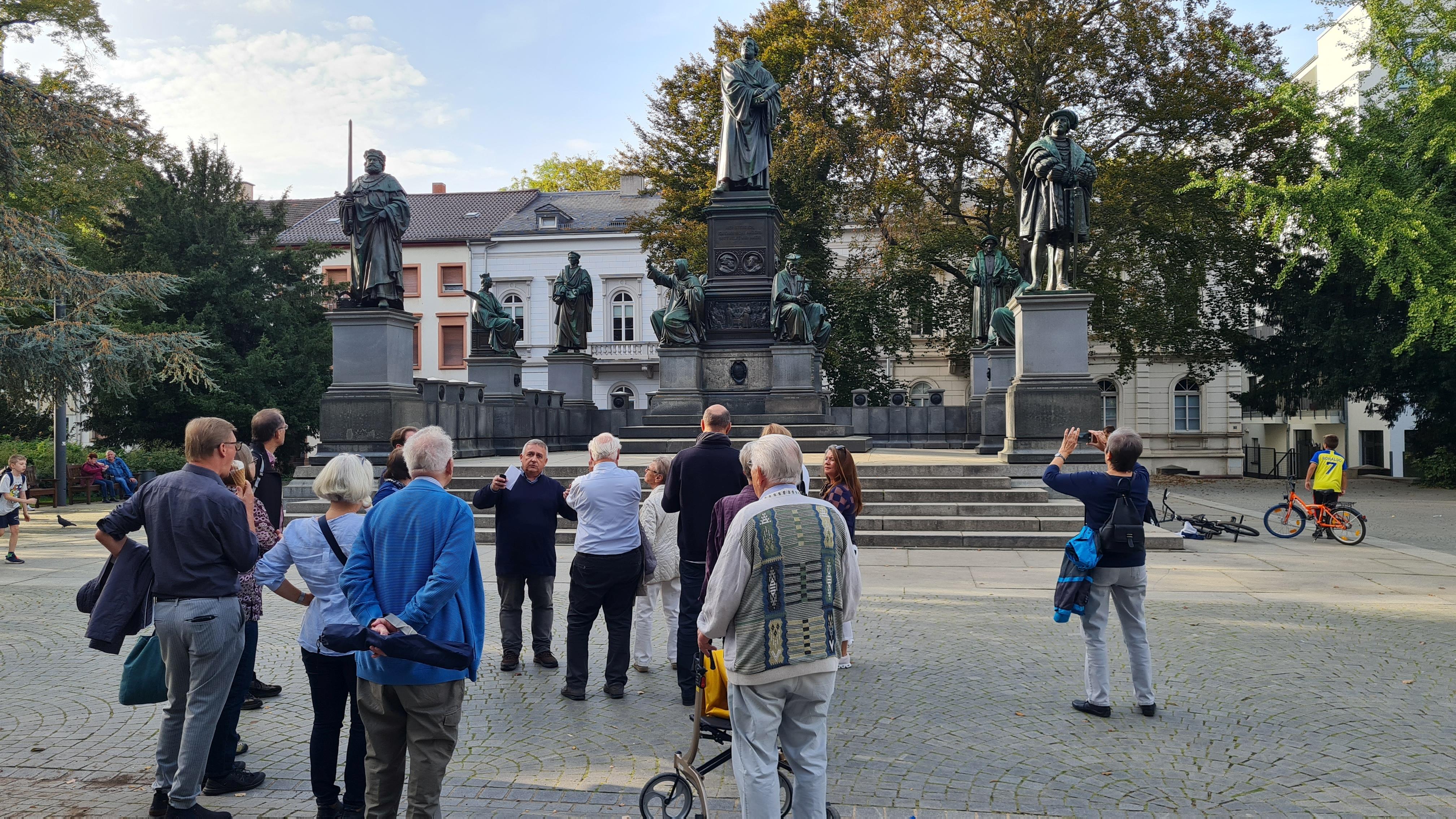 Im Heylshof angekommen besichtigten wir unter anderen das Denkmals Bismarcks sowie das neue zweite Denkmal an Luther, welche erst im Lutherjahr 2017 als Gedenkort mit den „Großen Schuhe Luthers” eingeweiht wurde. Der Standort wurde gewählt, weil es vermutlich genau hier war, dass Martin Luther vor Kaiser Karl V. stand und sich weigerte, seine Thesen zu widerrufen.